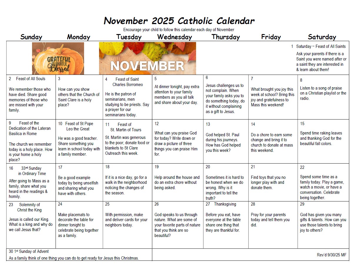 We give thanks for all those in Faith Formation 2024-2025 here at Saint Clare and pray for God's continued blessing and protection for our children, families and catechists!