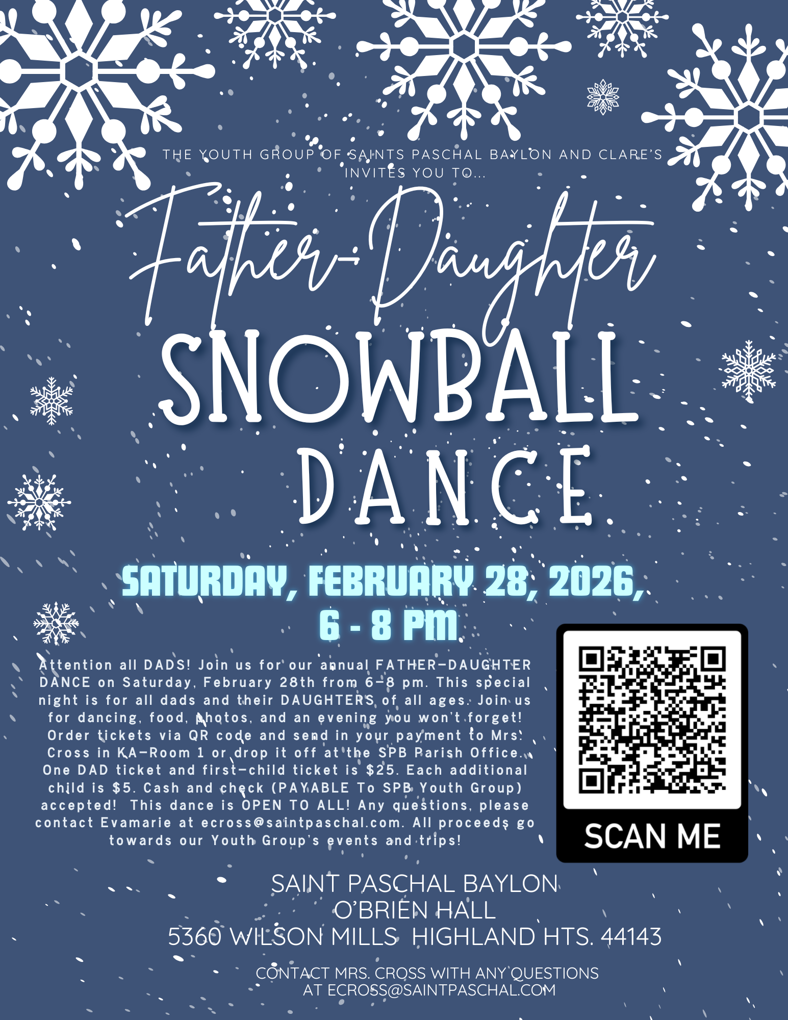 Questions? Please contact Mrs. Evamarie Cross, Director of Youth Ministry at ecross@saintpaschal.com.